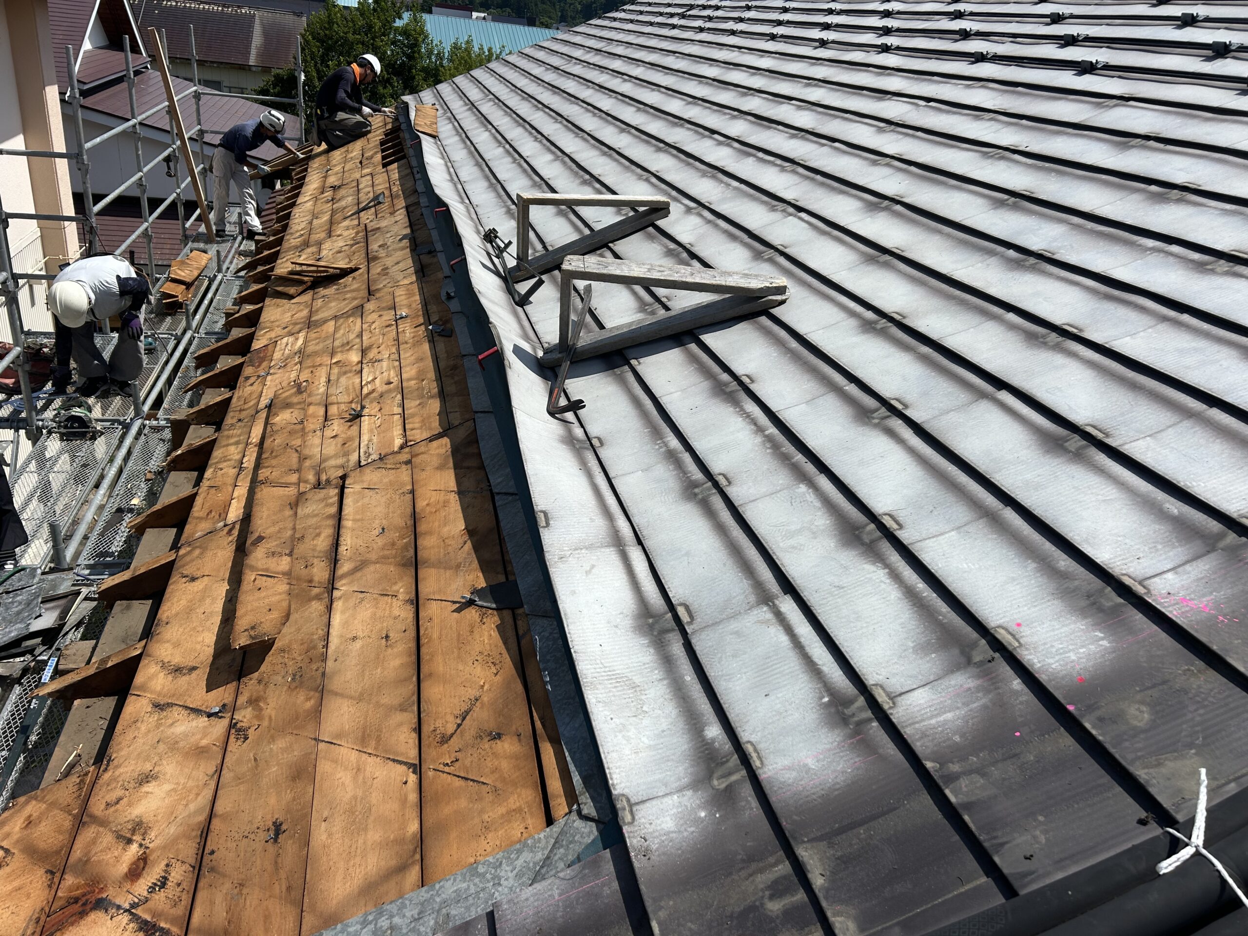 既存の屋根材を撤去して下地があらわに