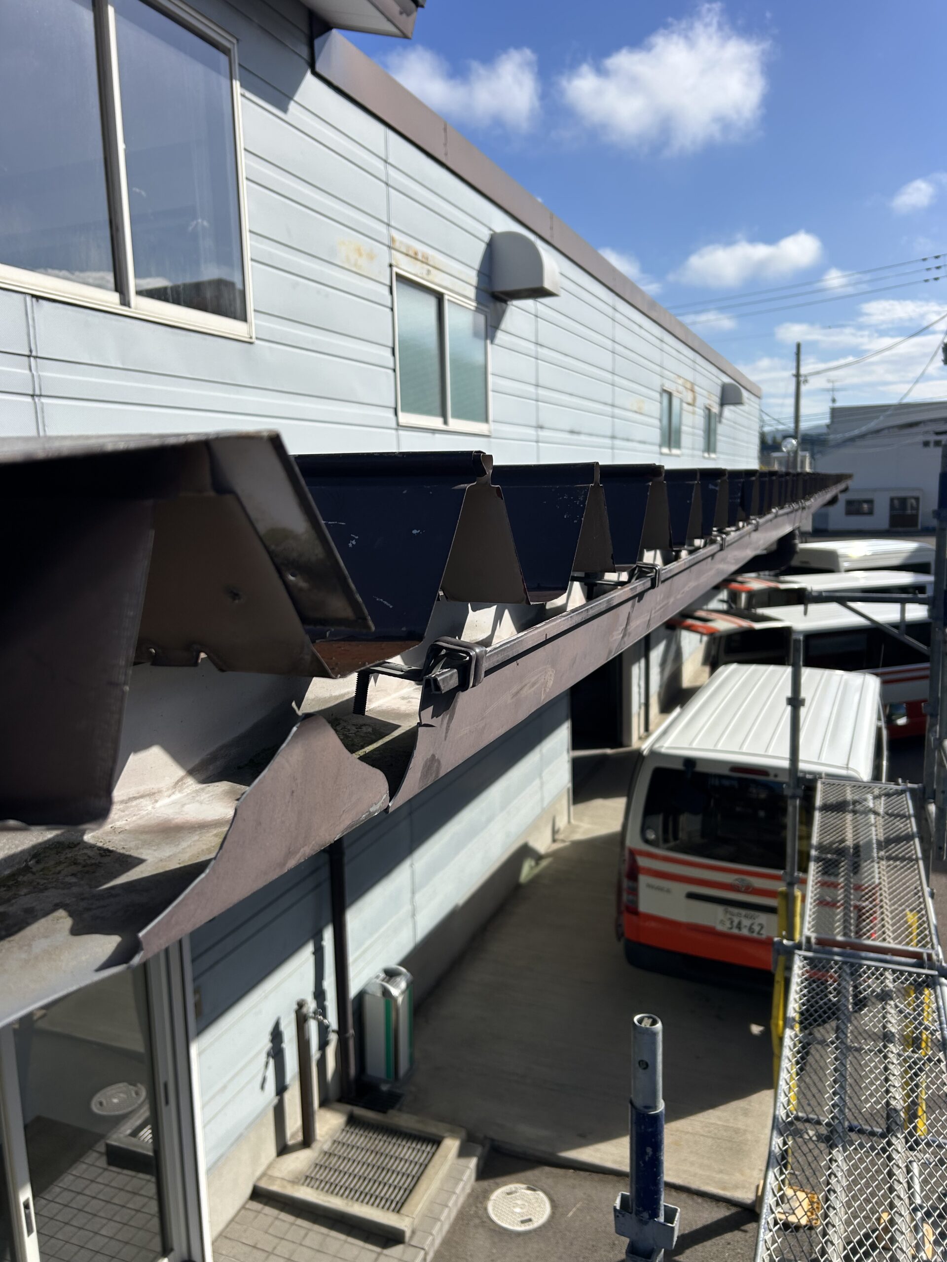 市内の方より、破損してしまった屋根の補修と雨樋の交換に伺いました!